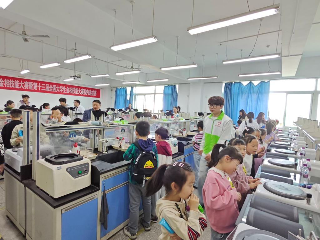 随后由金相大赛国赛一等奖团队成员带领小员工们参观金相实验室,并指导大家动手磨金相、利用金相显微镜观察钒钛产品的金相显微组织。特别设置的互动环节让参观者亲手操作实验,通过亲身体验科学实验感受科学原理在实际中的应用。