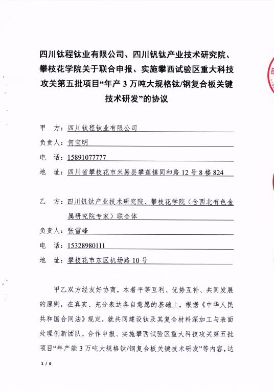 该成果是在双方共同承担的钒钛产业“卡脖子”技术、攀西试验区第五批重大科技攻关项目——“年产3万吨大规格钛钢复合板关键技术研发”支持下完成的。项目组攻克了乳化炸药配方及其炸药分段布药、界面结合质量控制、加工成型控等关键技术,通过爆炸成型制备出了世界最长、面积最大的TA2/345R钛/钢复合板(长16.183m、宽3.514m、厚0.065m),并出口南美巴西,标志着我国金属复合材料行业在国际化进程中迈出了坚实的一步。