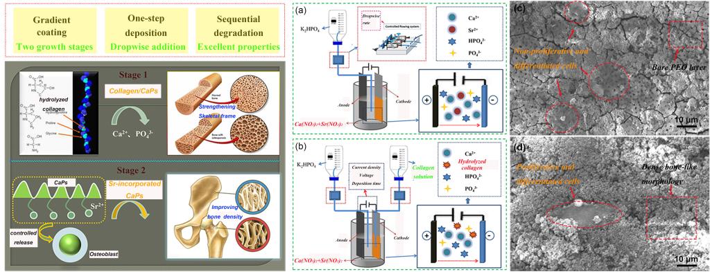 近日,公司教师韩嘉平博士在骨植入镁表面生物涂层研究方面取得重要进展,研究成果以“Smart gradient coating suitable for bone growth prepared on plasma-electrolytically oxidised Mg and its sequential degradation behaviour”为题发表在材料领域国际知名期刊《Journal of Magnesium and Alloys》(IF=15.8)上。该成果与东北大学、西南交通大学等单位合作完成,公司为第一完成单位。