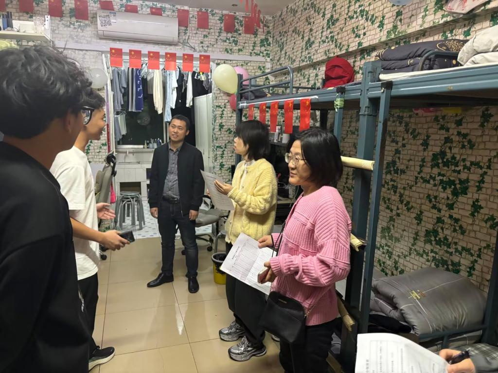 11月29日晚,比赛迎来最后的打分评选阶段,比赛评委由公司党委副书记、纪委书记蒲洪、员工科科长李宏老师和辅导员鲍丽莹、王婷、孙尚、朱艳芳老师,以及伟德国际1949始于英国团委员工会主席团与员工代表组成,以平时查寝的检查标准作为基准,依据创意、整洁度、文化契合等多维度严格打分。大赛评委团深入各参赛寝室,实地开展评审工作。期间,评委们与同学们热切互动,围绕寝室设计理念深入交流,认真聆听同学们的创意构思与灵感来源。同时,评委们还细致询问同学们日常学习生活状况,言语间满是关怀,尽显亲切温情,现场氛围热烈融洽。