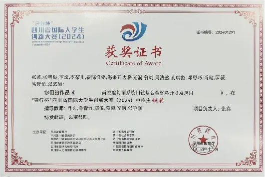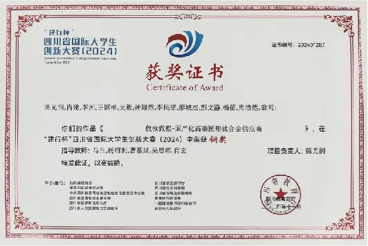 陈光润(1/12), 做钛做强-国产化高端医用钛合金供应商,“建行杯”四川省国际老员工创新大赛(20242.竞赛成果:
