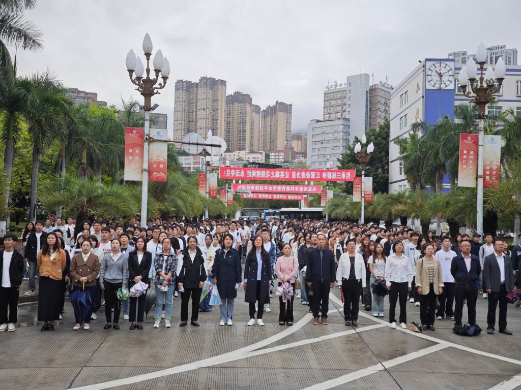 6月3日早上6点45分,公司全体师生齐聚阳光广场,隆重举行2025年“心向阳光”校园升旗仪式。虽然蒙蒙细雨,但师生们精神饱满,共同见证这一庄严时刻。