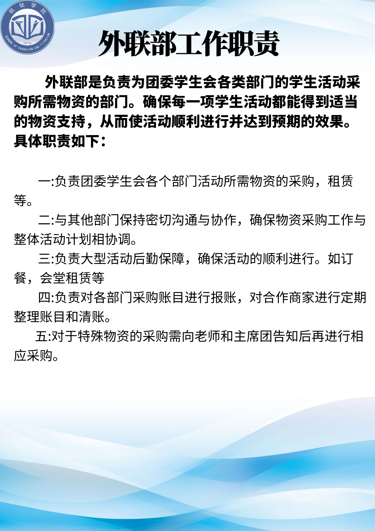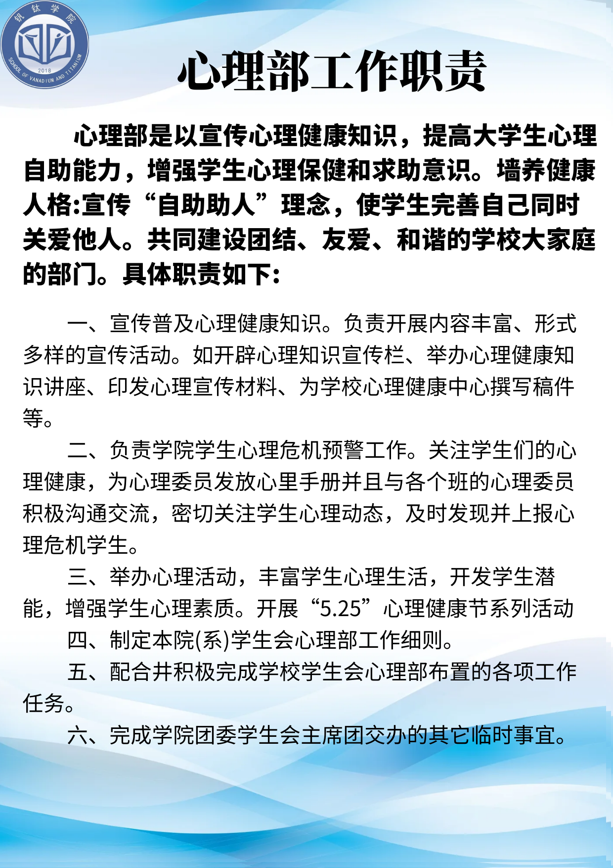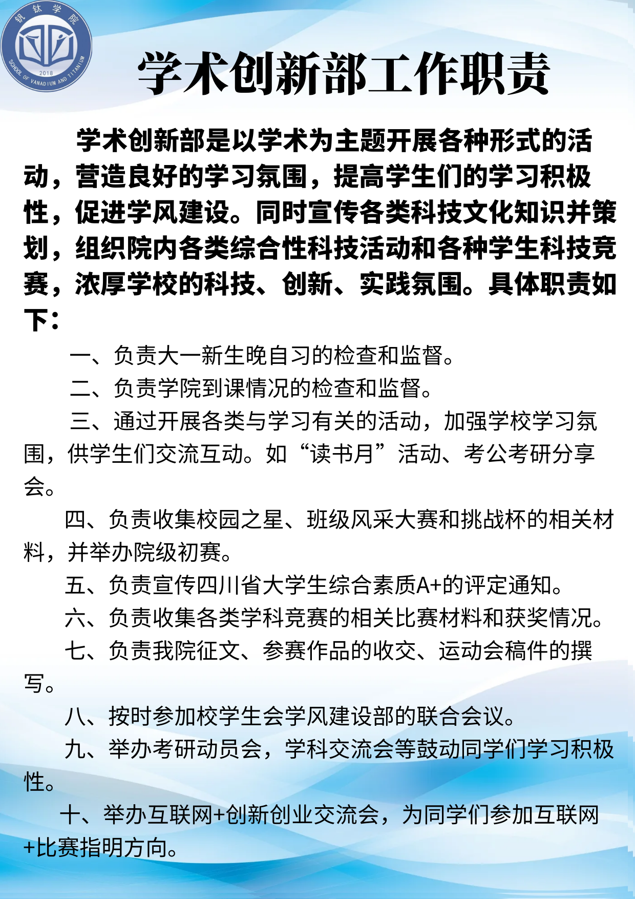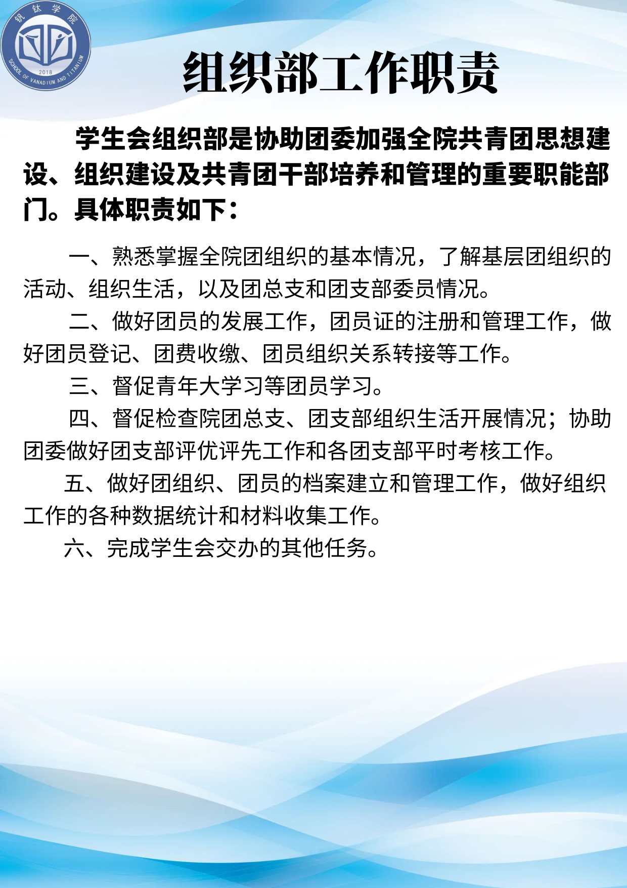 各部门部长(组织部、宣传部、社团团支部、外联部、文艺部、体育部、常务部、心理部、纪检部、学术创新部、钒钛服务站)