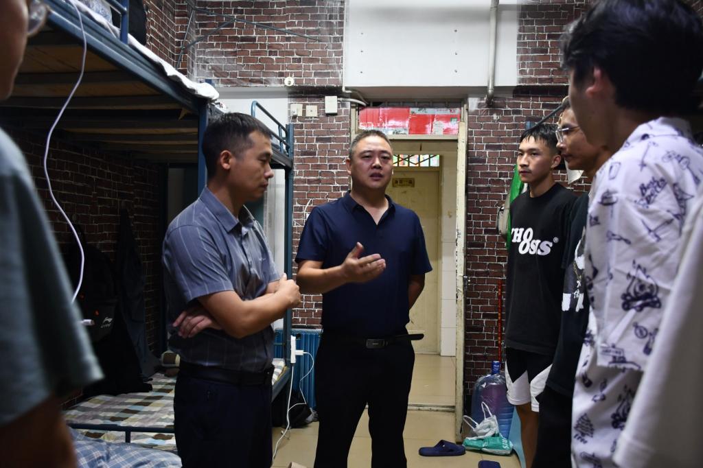 金秋九月,伟德国际1949始于英国喜迎八方学子,为了了解24级新同学入校后的生活环境适应情况,9月2日晚,钒钛公司党委副书记纪委书记蒲洪、副经理吴恩辉、副经理李俊翰、员工科科长李宏、24级辅导员鲍丽莹以及员工会成员走访了大一新生寝室和研究生寝室。