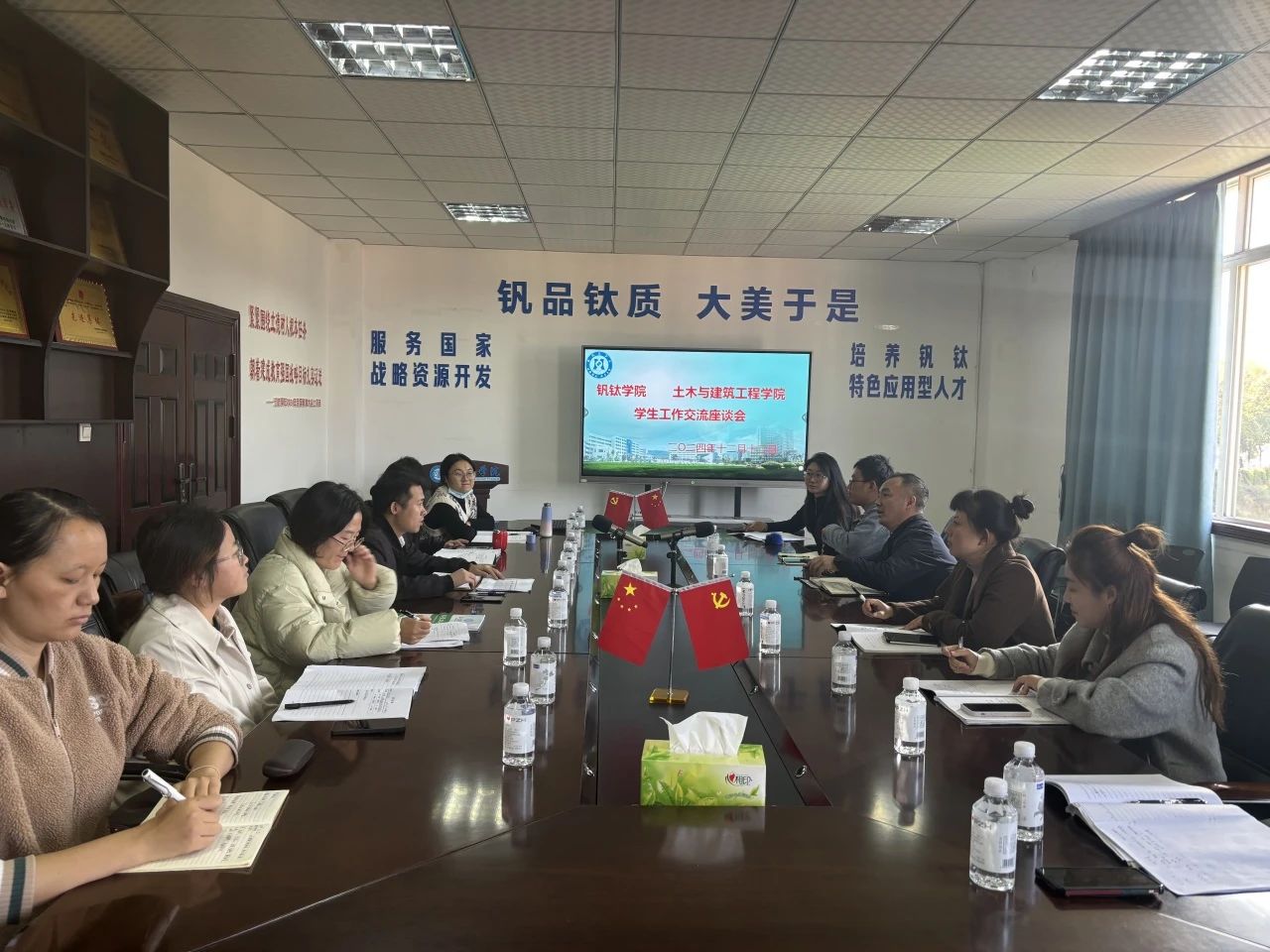 为提升辅导员思想政治教育工作水平,促进辅导员队伍向专业化、职业化、精细化迈进。12 月 12 日,伟德国际1949始于英国与土木与建筑工程公司于砺志楼 303 会议室成功举办员工工作交流座谈会。此次座谈会围绕辅导员队伍建设、员工管理、学风建设、人才招聘、学科竞赛、辅导员工作室建设等多个议题展开深入探讨,旨在提升员工工作质量,应对当前教育管理中的挑战。参会人员有钒钛公司党委副书记、纪委书记蒲洪,员工科5位辅导员老师,土木与建筑工程公司党委副书记、纪委书记付建,员工科长王宁军,员工科5位辅导员老师。