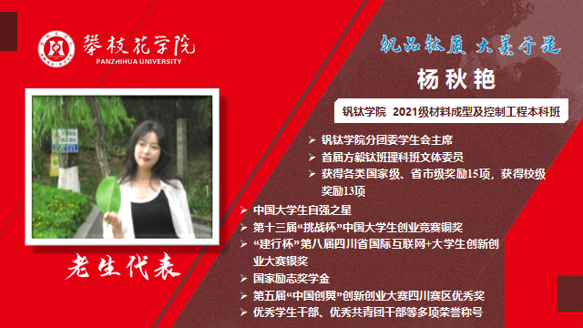 老生代表杨秋艳同学发言。她表示是公司的培育、老师的教诲以及同学们的相互帮助,让她得以在学习上不断进步,在生活中不断成长。她鼓励新生们珍惜大学时光,积极参与各项活动,勇于挑战自我,努力成为更好的自己。
