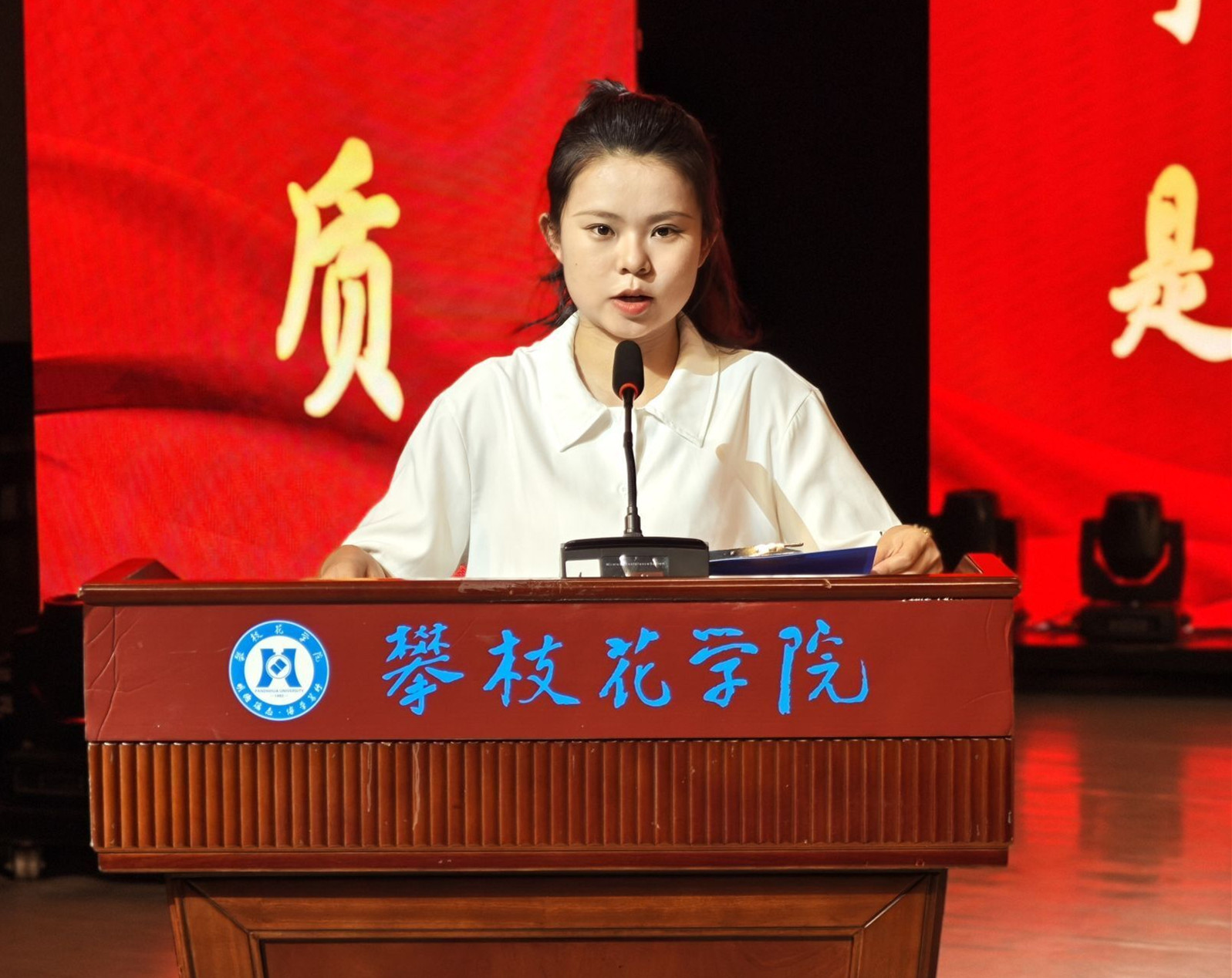 教师代表陈敏老师上台发言,她以自身的教学、科研经验为例,鼓励新生们要珍惜学习机会,勇于挑战自我,积极参与各类学术活动和社会实践,不断提升自己的综合素质。