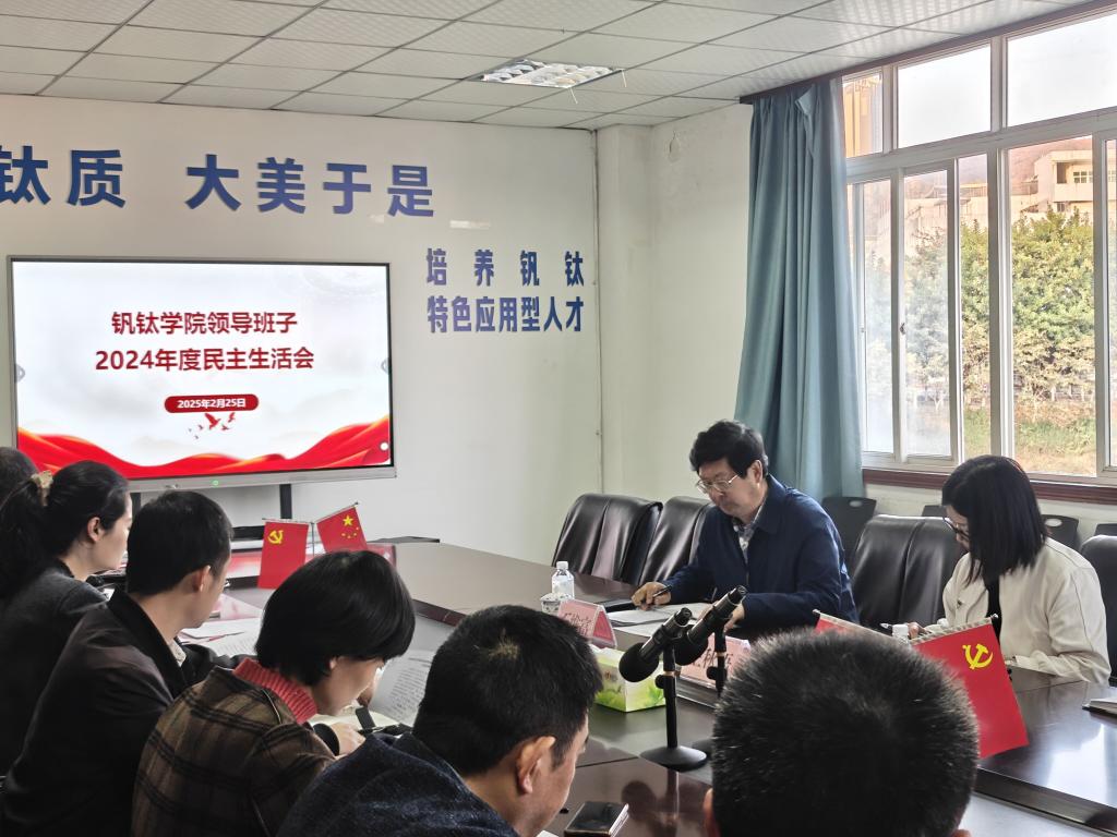 根据省委统一部署和公司统筹安排,2月25日上午,钒钛公司党委班子在砺志楼303会议室召开2024年度民主生活会。会议以“深入学习贯彻习近平新时代中国特色社会主义思想,巩固深化党纪学习教育成果,综合发挥党的纪律教育约束、保障激励作用,为进一步全面深化改革、奋力谱写中国式现代化四川新篇章提供坚强纪律保证”为主题,切实加强党的思想建设,锤炼品格强化忠诚、实干担当促进发展。公司党委常委、副董事长石维富以及党委行政办公室副主任王秋语到会指导。公司领导班子参加会议,党委委员、纪委委员、党支部书记以及各科室中心负责同志列席会议,会议由党委书记王鹃主持。