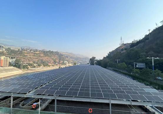 该团队与攀枝花市环境能源(集团)有限公司深度合作,创新性提出在攀枝花东区小沙坝污水处理池上方采用横向15°安装模式,屋顶采用纵向28°安装模式,停车棚采用“光-储-充”一体化模式,办公屋顶和水池上方光伏方阵,既合理利用自身资源,又实现了地方优秀太阳能资源的开发与利用;既保证了装机容量,又兼具美观性,与金沙江共同形成沿江景观带上的优美风景线。